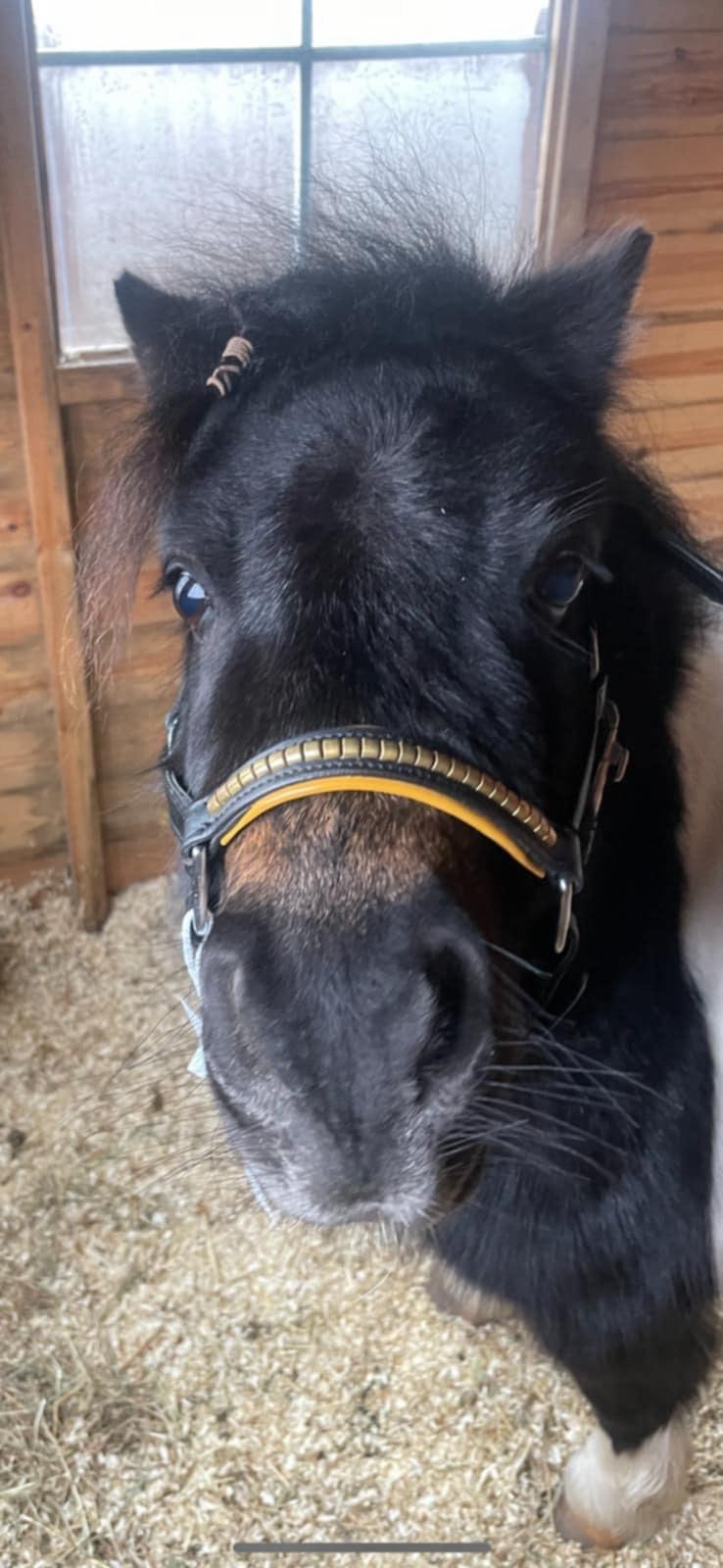 Introducing a brand new, high-quality headcollar from MIRZA 1973, made with genuine leather and featuring a stunning golden clincher. This headcollar is designed for your mini Shetland and comes in a sleek black colour. It is expertly crafted in India to ensure top-notch quality.