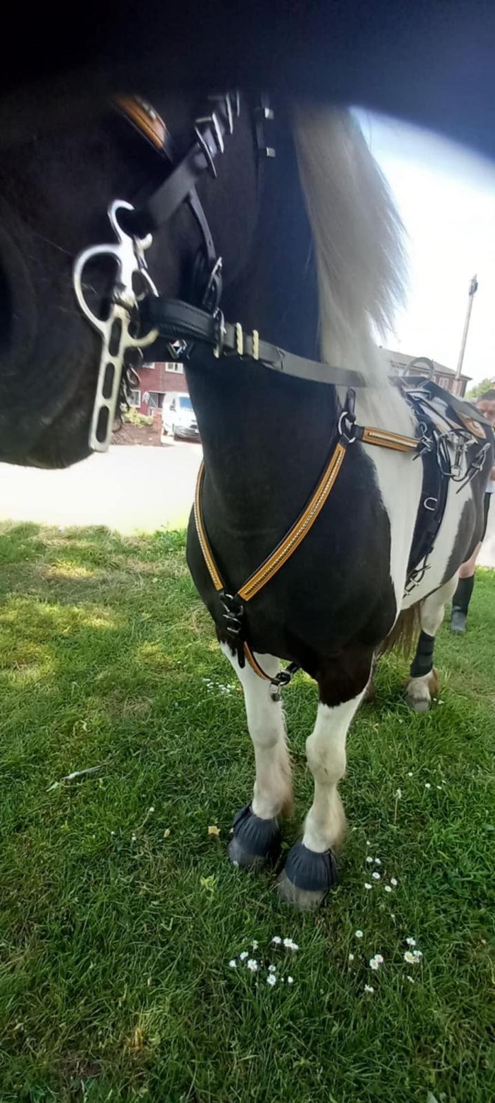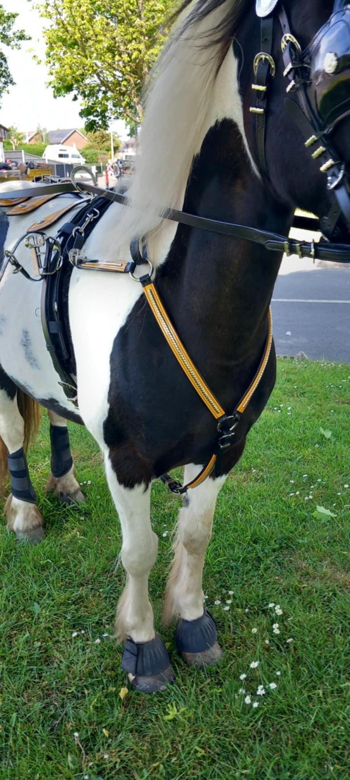 NEW QUICK HITCH HARNESS SUPREME STRONG QUALITY LEATHER HORSE/ COB SIZE BLACK/YELLOW